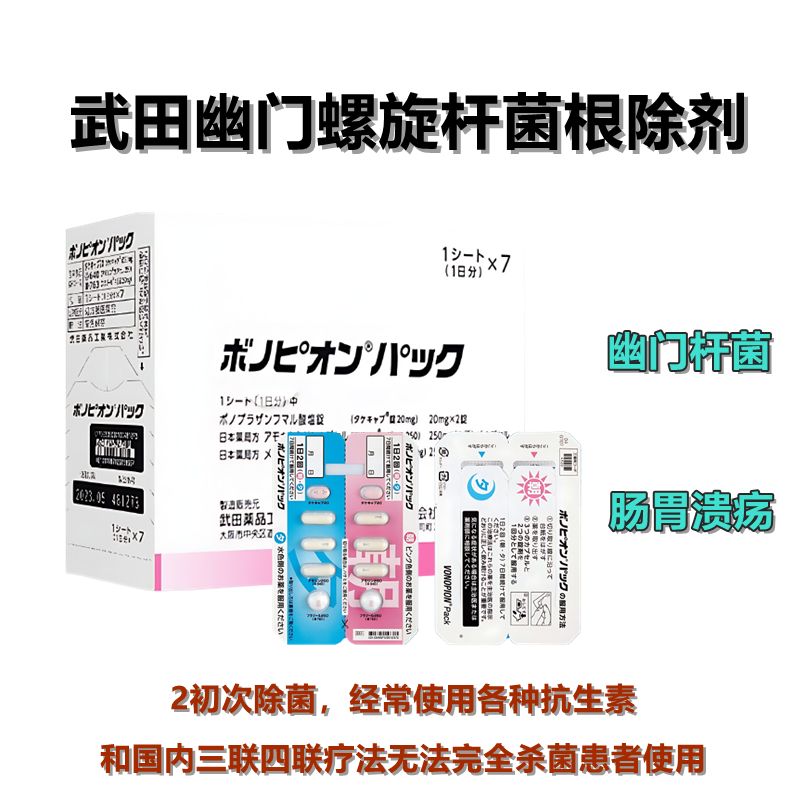 日本武田药品公司推出了两款用于根除幽门螺杆菌的药物,分别是 VONOSAP 和 VONOPION。这两种药都是三药组合装,也就是一盒药里配好了三种成分。