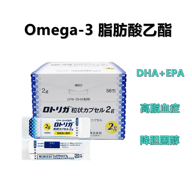 Lotriga粒状Omega-3 脂肪酸乙酯胶囊2g:56包 奥米加 - 3DHA降血脂降胆固醇 增强记忆 延缓老年痴呆 降低血管黏连 抑制血小板聚集 延缓血栓形成