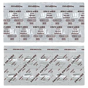 1錠中:日局 エストリオール0.5mg 添加物:酒石酸、炭酸水素ナトリウム、バレイショデンプン、ステアリン酸マグネシウム、乳糖水和物