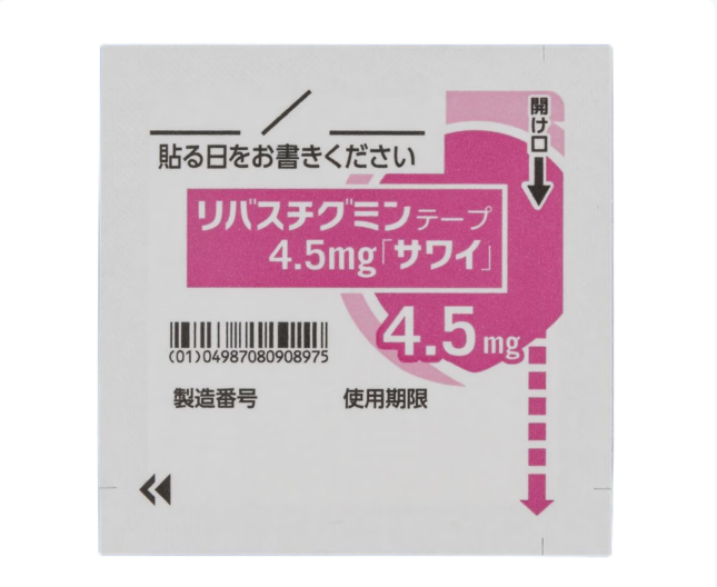 1枚(1.6cm×1.6cm)中:リバスチグミン4.5mg 添加剤:水素添加ロジングリセリンエステル、スチレン・イソプレン・スチレンブロック共重合体、ポリブテン、ポリイソブチレン、ベヘン酸