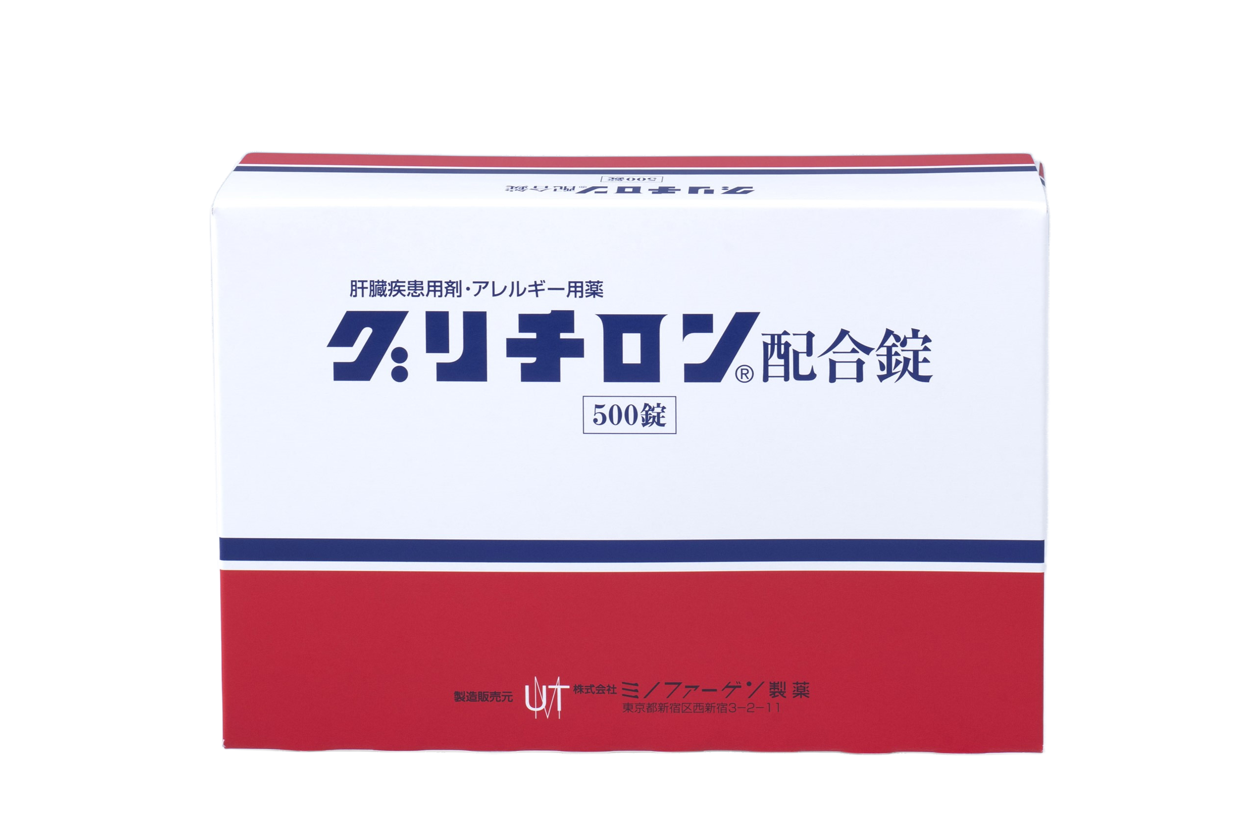 1錠中:グリチルリチン酸モノアンモニウム35mg(グリチルリチン酸として25mg)、日局グリシン25mg、DL-メチオニン25mgを含有 添加物:沈降炭酸カルシウム、乳糖水和物、結晶セルロース、カルメロースカルシウム、タルク、ステアリン酸マグネシウム、ヒプロメロース、エチルセルロース、軽質無水ケイ酸、グリセリン脂肪酸エステル、白糖、ゼラチン、ポビドン、アラビアゴム末、ポリオキシエチレン(105)ポリオキシプロピレン(5)グリコール、カルナウバロウ、パラフィン、白色セラック