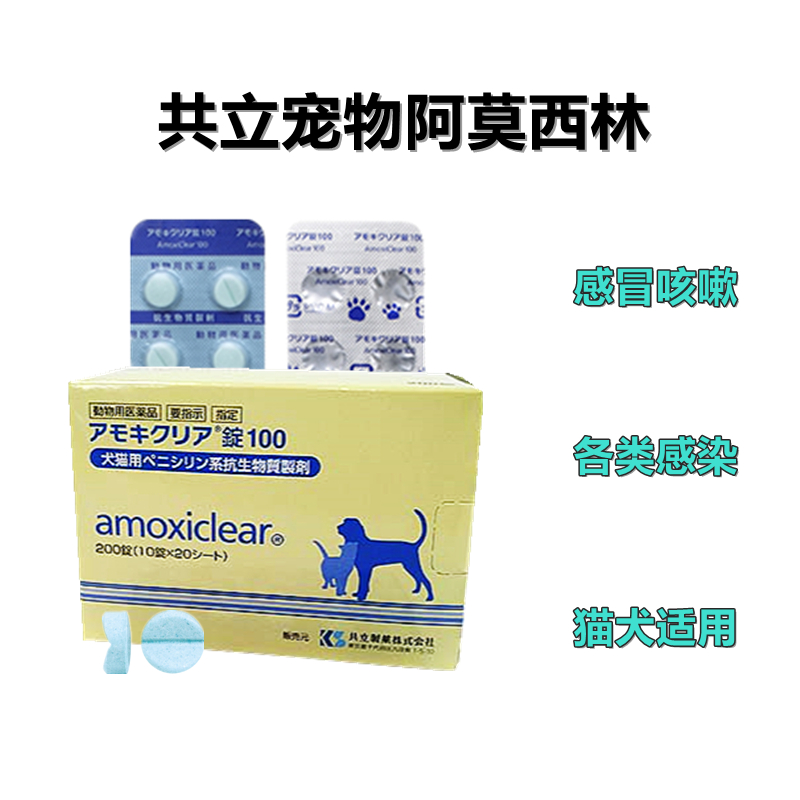 Amoxicillin 共立宠物速喏阿莫西林片100mg 猫咪狗狗杀菌消炎泌尿呼吸消化发热 皮肤细菌感染抗生素消炎犬感冒打喷嚏流鼻涕 宠物类药